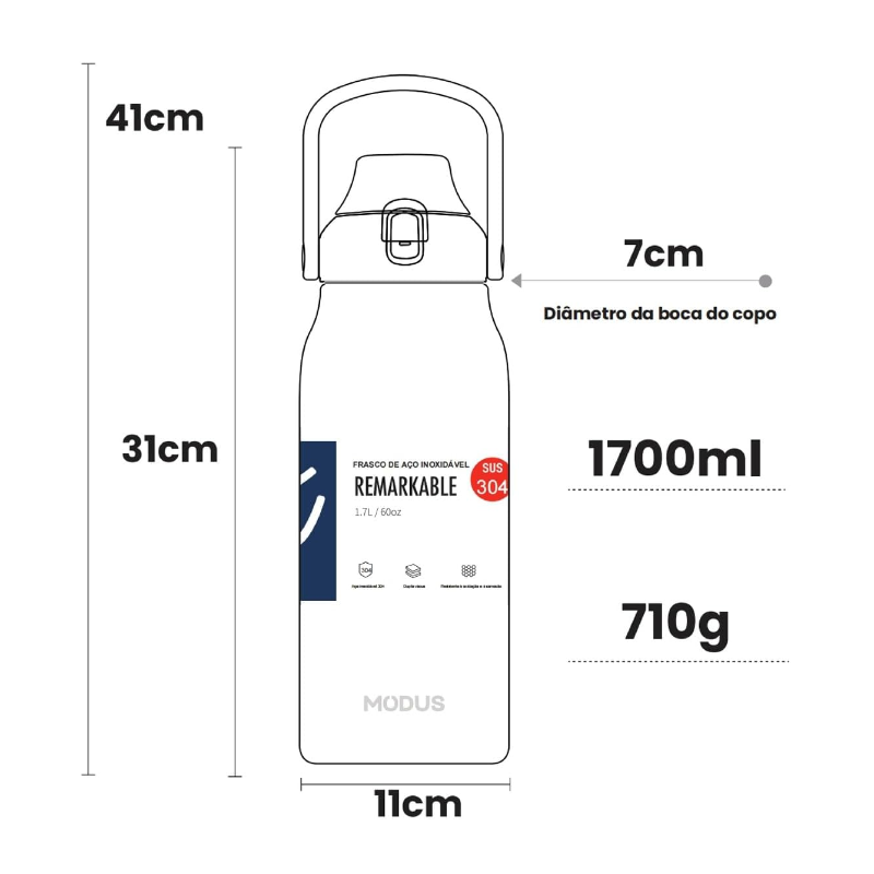 Garrafa Termica de Aço Inoxidável Isolada Modus, com Canudo 1700ml