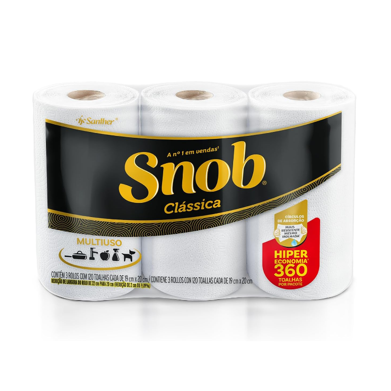 Snob Papel toalha multiuso folha dupla, 360fls, 3 rolos