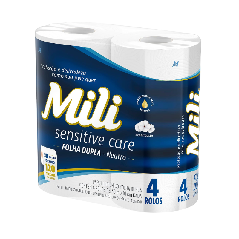 Mili Papel Higiênico Sensitive Care 30m Folha Dupla Neutro, 4 rolos