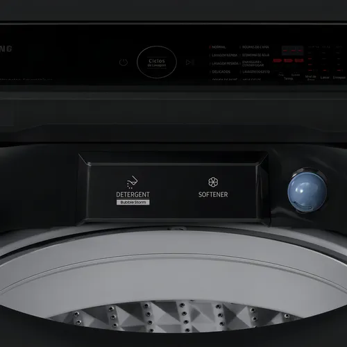 Dilui o sabão no dispenser com suas hélices e cria bolhas que ajudam a penetrar nas roupas 2,5 vezes mais rápido além de proporcionar até 20% mais cuidado com os tecidos.