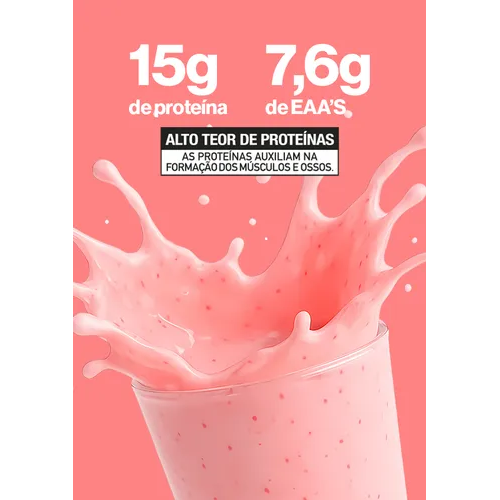 Proteína do soro do leite concentrado (WPC), maltodextrina, espessante goma xantana, edulcorantes (sucralose e acessulfame de potássio), corante e aromatizante idêntico ao natural.