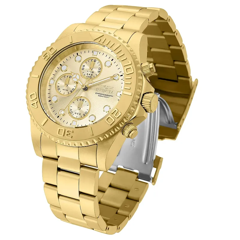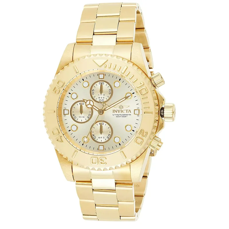 Invicta Relógio de pulso Pro Diver, aço inoxidável, quartzo japonês, Banhado a ouro