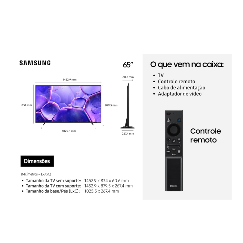 Samsung Smart TV 65" Crystal UHD 4K U8100F 2025