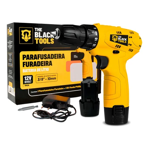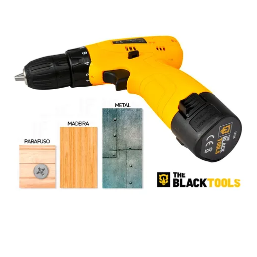 PARAFUSADEIRA FURADEIRA 3/8 10MM SEM FIO BATERIA 12V BIVOLT TB-12A - The Black Tools