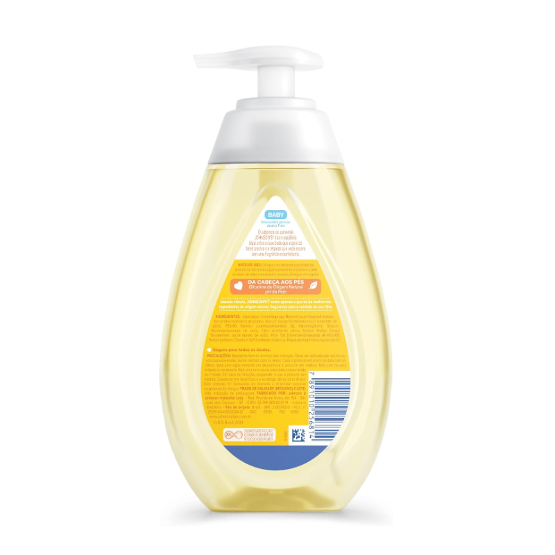 O que é e para que serve? Você sabia que a pele do bebê é mais fina e perde água duas vezes mais rápido que a pele do adulto? Por isso, é importante manter uma rotina de limpeza e higiene adequada para os bebês já nos primeiros dias de vida. O Sabonete Líquido Glicerina Camomila JOHNSON'S® Baby, 400mL é o cuidado que a pele do bebê precisa e a limpeza que você espera com uma fragrância reconfortante. Além disso, é testado por pediatras e dermatologistas, hipoalergênico e seguro desde o primeiro dia de vida. Frasco com 20% de plástico reciclado, cuidando do seu bebê e do futuro do nosso planeta! Benefícios e diferenciais Pele hidratada e perfumada Limpa suavemente Desenvolvido para uso desde o 1º dia. Da cabeça aos pés Testado por pediatras e dermatologistas 94% de ingredientes naturais.* Com glicerina de origem natural Hipoalergênico, formulado para ser suave Exclusiva fórmula CHEGA DE LÁGRIMAS® Livre de ingredientes que são agressivos à pele do bebê (corantes, parabenos e sulfatos) pH ideal para a delicada pele do bebê *Cálculo conforme ISO 16128-1:2016 com base no volume cumulativo, incluindo água. Como usar Coloque uma pequena quantidade do produto na mão e massageie suavemente o cabelo e a pele do bebê até obter uma espuma cremosa. Enxágue em seguida. Indicações de uso: Seguro para todas as idades Composição Aqua/água, Cocamidopropyl Betaine/cocamidopropil betaína, Decyl Glucoside/decil glicosídeo, Sodium Cocoyl Isethionate/cocoil isetionato de sódio, PEG-80 Sorbitan Laurate/polissorbato 20, Glycerin/glicerol, Sodium Benzoate/benzoato de sódio, Citric Acid/ácido cítrico, Sodium Methyl Cocoyl Taurate/metil cocoil taurato de sódio, PEG-150 Distearate/diestearato de PEG-150, Parfum/perfume, Disodium EDTA/edetato dissódico, Polyquaternium-10/poliquatérnio-10. Precauções Mantenha fora do alcance das crianças. Deve ser aplicado por adulto ou sob sua supervisão. Evitar contato com os olhos. Não usar na pele irritada ou lesionada. Em caso de irritação, suspender o uso e procurar um médico. Conservar em local fresco e ao abrigo da luz solar direta. Este produto foi formulado de maneira a minimizar possível surgimento de alergia.