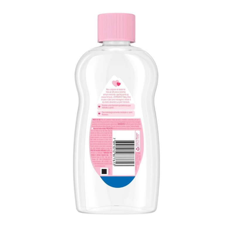 O que é e para que serve? Com uma fórmula suave, que retém 10x mais a hidratação natural da pele*, o Óleo Hidratante JOHNSON'S® Baby, 200mL é ideal para massagear e relaxar seu bebê, formando uma barreira protetora que deixa a pele hidratada e suave. Desenvolvido com óleo de alta qualidade para manter a hidratação natural da pele. Possui fórmula transparente e emoliente que amacia, sendo suave para todas as idades. Dermatologicamente testado. Fórmula com suavidade comprovada, desenvolvida especialmente para a pele do bebê. *Quando aplicado na pele úmida e comparado a uma loção hidratante aplicada na pele seca. Benefícios e diferenciais Forma uma barreira protetora que hidrata a pele. Livre de corantes, parabenos e ftalatos. Testado por dermatologistas. Fórmula com suavidade comprovada, ideal para a pele do bebê. Como usar Para abrir, pressione a tampa para baixo e, mantendo-a pressionada, gire para a esquerda. Para fechar, gire para direita. Coloque uma pequena quantidade do produto na mão e massageie suavemente, com movimentos circulares, a pele do bebê. Indicações de uso: Seguro para todas as idades Composição Paraffinum Liquidum, Parfum (Amyl Cinnamal, Benzyl Alcohol, Benzyl Benzoate, Citronellol, Geraniol, d-Limonene, Linalool), Tocopheryl Acetate. Precauções Mantenha fora do alcance de crianças. Conservar em local fresco, seco e ao abrigo da luz solar direta. Deve ser aplicado por adulto ou sob sua supervisão. Não usar na pele irritada ou lesionada. Em caso de irritação, suspender o uso e procurar um médico. Evitar contato com mucosas e os olhos. Caso o produto entre em contato com o olho, lavar com água corrente em abundância e procurar um médico.