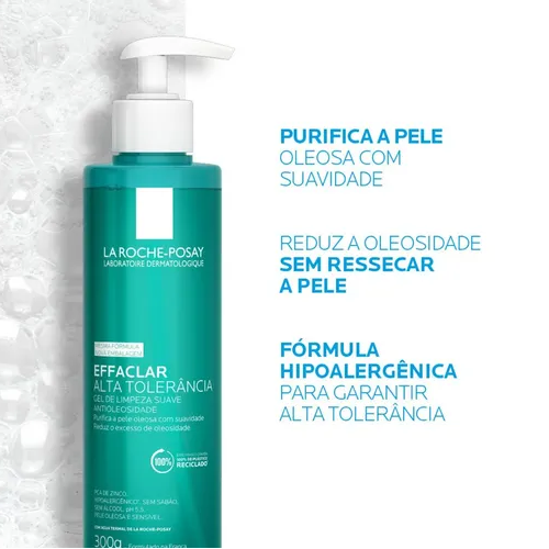 O Effaclar Alta Tolerância da La Roche-Posay é um gel de limpeza especialmente desenvolvido para peles sensíveis ou sensibilizadas, oferecendo uma purificação delicada que remove impurezas e o excesso de oleosidade sem agredir. Sua fórmula de alta tolerância é hipoalergênica, livre de parabenos e corantes, garantindo máximo conforto e segurança para a pele mais delicada, enquanto reduz o brilho excessivo e controla a oleosidade de forma eficaz.