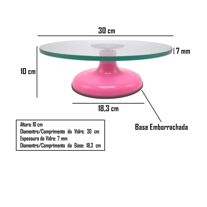 A plataforma giratória gira suavemente no sentido horário ou anti-horário, possui rolamento duplo e oculto. Sua superfície antiderrapante faz com que não saia do lugar enquanto você decora.