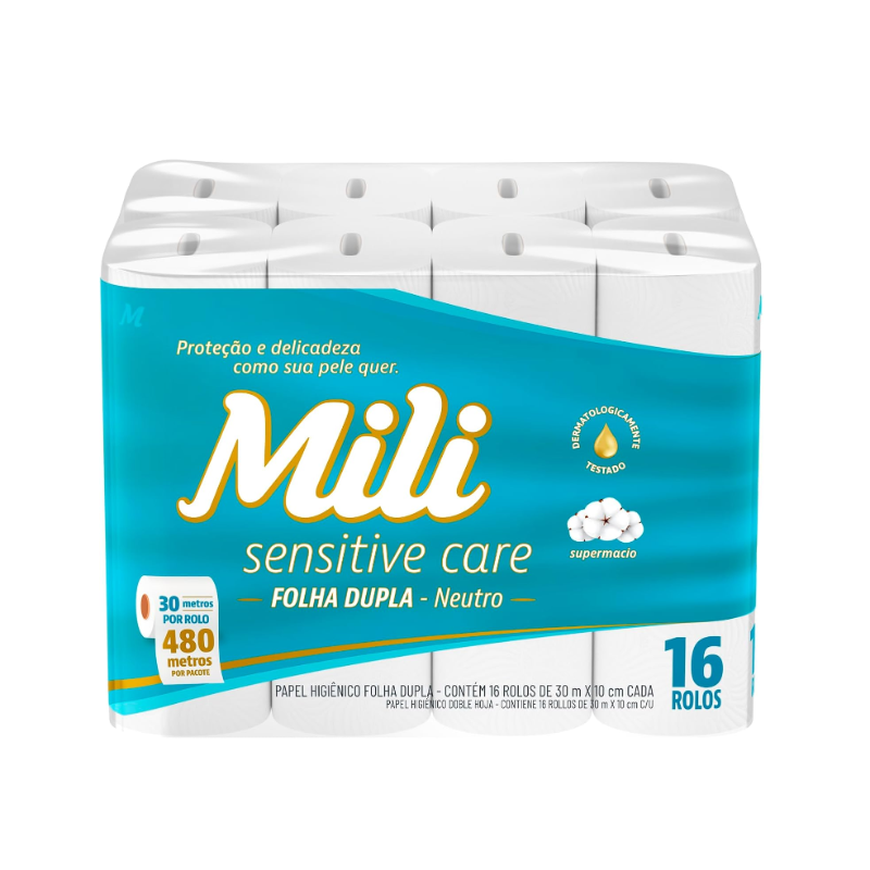 Mili Papel Higiênico Sensitive Care 30m Folha Dupla 16 rolos