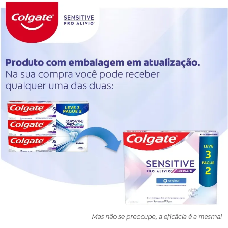 O Creme Dental para Sensibilidade Colgate Sensitive Pro Alívio funciona como um escudo protetor (com o uso regular) e tem ação imediata (com aplicação direta, massageando por 1 minuto em cada dente sensível), cobrindo os canais que levam ao centro do dente, proporcionando alívio imediato à sensibilidade.