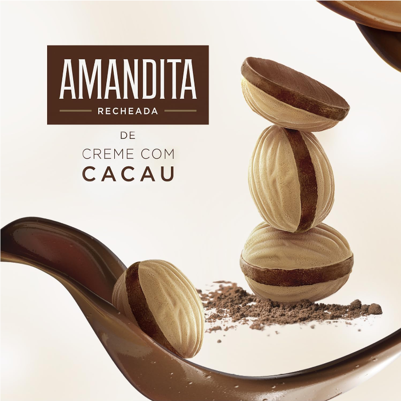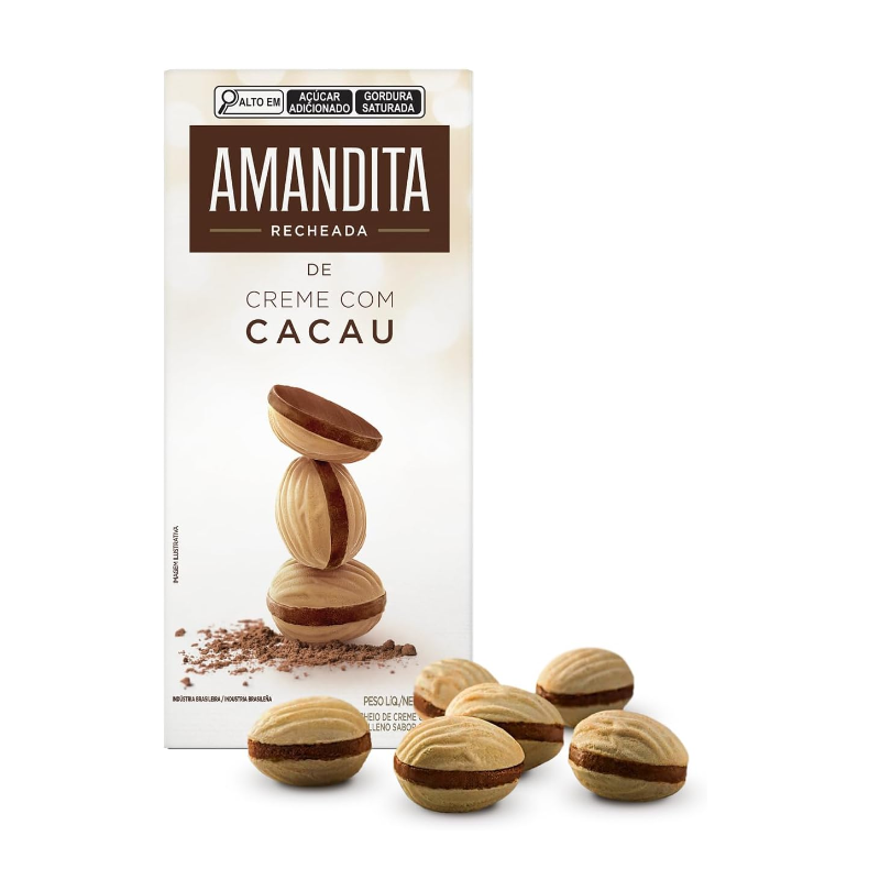 Compre o Wafer Recheado Amandita Sabor Chocolate, a deliciosa combinação de wafer com irresistível recheio de creme com cacau. Com uma casquinha crocante e recheio cremoso sabor chocolate que derrete na boca, Amandita é a escolha certa para compartilhar momentos especiais ou mesmo para curtir uma sobremesa com gostinho de chocolate. A caixa de 200g do Wafer Recheado Amandita Sabor Chocolate é ideal para presentear alguém da família ou um amigo querido com uma experiência cheia de sabor de chocolate para os paladares mais exigentes. Vide tabela nutricional e ingredientes nas imagens. Produto com alto teor de açúcar adicionado e gordura saturada.