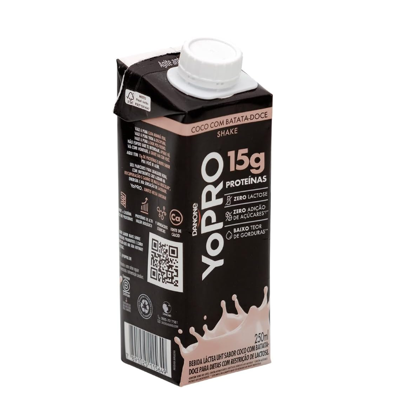 Orgazine seus treinos diários com YoPRO Bebida Láctea UHT Coco com Batata-Doce 15g de proteínas 250ml - 12 unidades. YoPRO é a marca especialista em criar produtos com alto teor de proteínas, práticos e deliciosos para quem busca uma rotina ativa e saudável. YoPRO é proteína, sabor e praticidade para sua rotina. Você pode consumir seu YoPRO Shake Proteico UHT 15g de proteínas a qualquer momento, seja como parte do seu café da manhã, como lanche entre as refeições ou antes e depois dos treinos. Sua fórmula prática e deliciosa permite que você o leve para onde quiser, seja na academia ou no trabalho. É essencial para você que busca um estilo de vida ativo e saudável, além de com o seu consumo de proteínas diárias, é um aliado para sua performance física e seu bem-estar, complementando a sua rotina de forma saudável e saborosa. Experimente e vá além! Ingredientes leite parcialmente desnatado, concentrado proteico de leite, amido modificado, concentrado proteico de soro de leite, soro de leite em pó, enzima lactase, estabilizantes celulose microcristalina, carboximetilcelulose, carragena, fosfato dipotássico, fosfato dissódico e citrato de sódio, aromatizantes e edulcorante sucralose. NÃO CONTÉM GLÚTEN. ALÉRGICOS: CONTÉM LEITE E DERIVADOS. PODE CONTER SOJA.