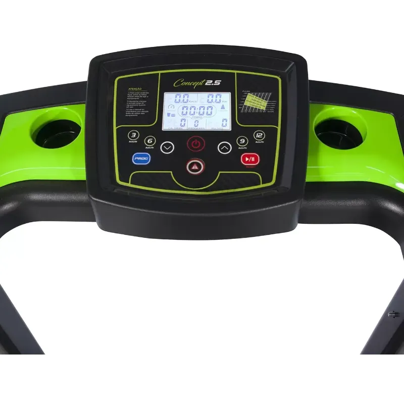 A esteira eletrônica Concept 2.5 Dream Fitness oferece ao usuário a possibilidade de praticar exercícios no conforto e segurança de sua casa, a qualquer hora. Dobrável, é perfeitamente compacta para ser guardada de forma prática no ambiente residencial, ao mesmo tempo em que seus 09 programas e velocidade máxima de 16km/h são atributos que constituem um produto de alta performance para manter a saúde e condicionamento físico. A esteira possui ainda 03 níveis de inclinação para se ajustar a você e garantir o conforto da caminhada ou corrida, contando também com 08 amortecedores localizados na superfície de caminhada, que protegem as articulações do usuário absorvendo o impacto.