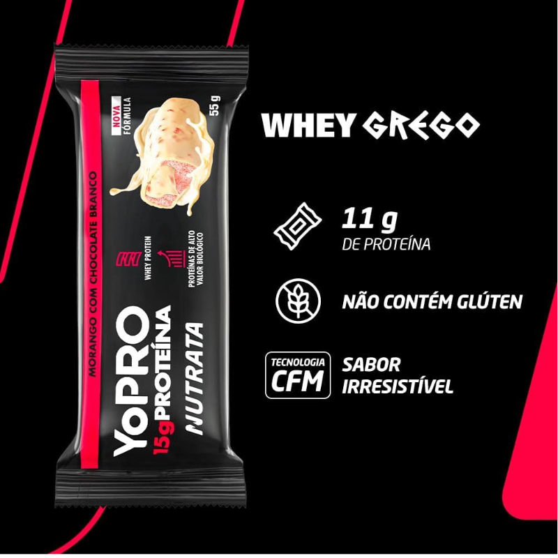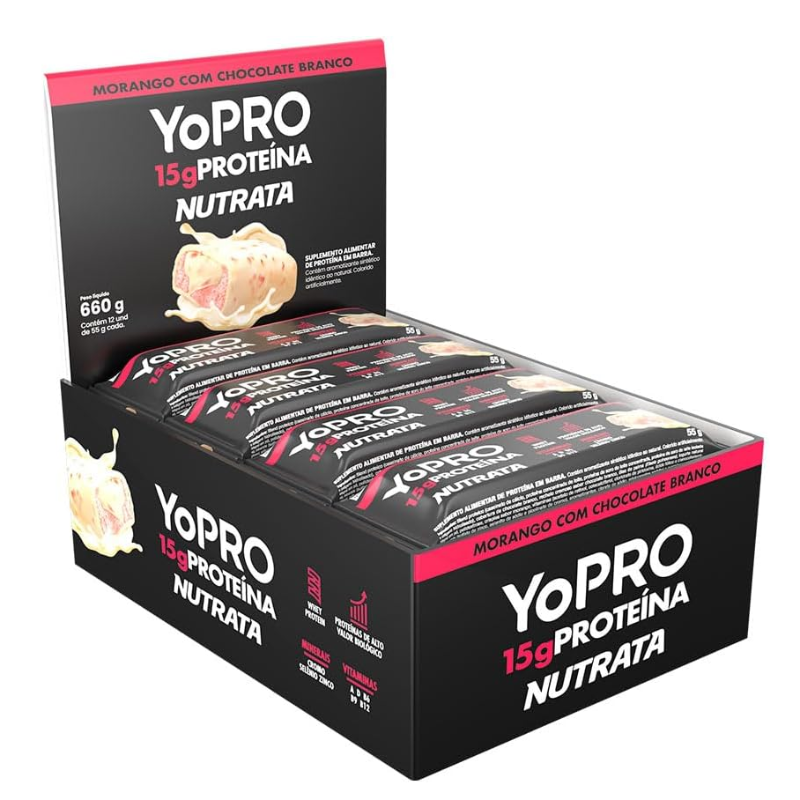 Barra YoPRO Morango com Chocolate Branco, Nutrata Display C/ 12 Barras de 40g
