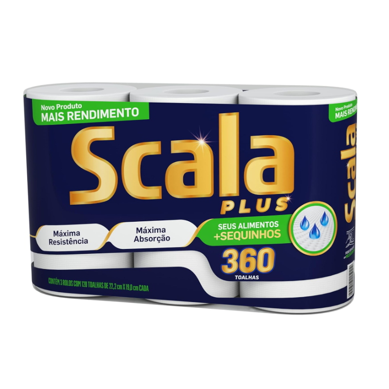 O papel toalha Scala Plus possui alta absorção, para deixar os alimentos sequinhos e muito mais leves. Agora com 3 rolos e mais folhas, Scala dura muito mais!