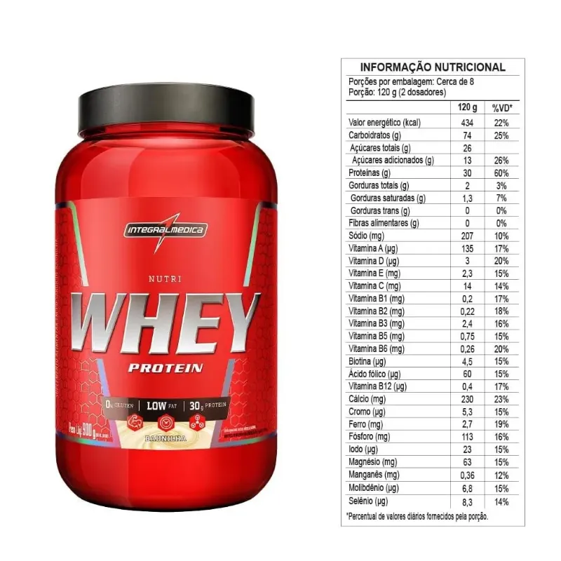 Com fórmula de fácil solubilidade e delicioso sabor, nutri whey protein fornece, na porção diária, 30 g das melhores proteínas combinadas a uma rica oferta energética. As proteínas do soro de leite (whey protein), albumina e colágeno estão relacionadas com funções importantes no organismo, sobretudo na composição das estruturas musculares. Já os carboidratos complexos (maltodextrina) e simples (frutose) são essenciais no fornecimento de energia para os treinos. Isento de sacarose (açúcar), nutri whey protein ainda é fonte de bcaa e adicionado de vitaminas e minerais.w