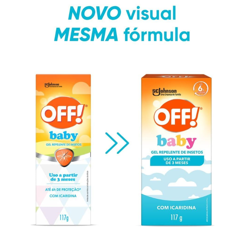 OFF! Baby é a escolha certa para os pequenos e foi cuidadosamente desenvolvido para peles sensíveis, protegendo contra picadas de mosquitos. Indicado como repelente baby, é seguro, prático e vem na versão em gel com 117g. Testado dermatologicamente, sua fórmula à base de Icaridina pode ser usada em bebês a partir de 3 meses.
