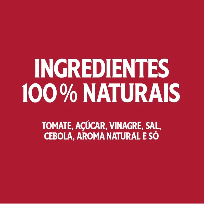 Mesma fórmula do ketchup número 1 do Brasil, feito com 6 ingredientes naturais. Embalagem maleável, que facilita o manuseio na cozinha.