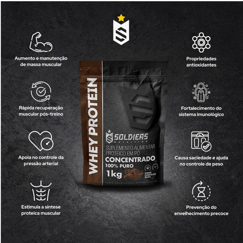 Whey Protein Concentrado 1kg Sabor Chocolate Belga Soldiers Nutrition