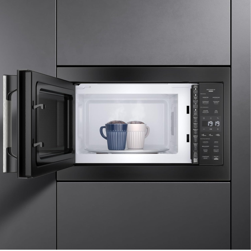 Prepare suas refeições de forma rápida e prática com o Micro-ondas de Embutir Electrolux 34L Experience (ME3BP). Compacto por fora e espaçoso por dentro, este produto possui 34 litros de capacidade e é perfeito para você se inspirar e inovar na cozinha. O painel inteligente com ajustes automáticos de potência oferece quatro modos diferentes de preparo para facilitar seu dia a dia: Derreter, Desidratar, Cozinhar Rápido e Cozinhar Delicado. Com esses novos preparos você poderá derreter manteiga e chocolate de forma mais uniforme e sem passar do ponto, além de preparar com facilidade chips de vegetais e frutas ou desidratar ervas para conservá-las por mais tempo. Cozinhe também suavemente alimentos que necessitam de mais cuidado, como vegetais macios e peixes com a função “Cozinhar Delicado” ou acelere seus preparos ao acionar “Cozinhar Rápido” no painel. Tudo isso pensado para você se inspirar e preparar o que quiser na cozinha. Esse produto também conta com a nova tecnologia de Descongelamento Assistido Electrolux, que oferece resultados melhores e mais uniformes no descongelamento dos alimentos, através das orientações “mexer” ou “virar” sinalizadas no painel. Preparar aquelas receitas mais comuns no seu dia a dia tornou-se mais fácil, pois você também pode contar com seis receitas pré-programadas disponíveis no Painel Touch: lasanha, arroz, brigadeiro, pipoca, batata chips e bolo de caneca. É o micro-ondas que certamente vai te inspirar e te surpreender na cozinha!