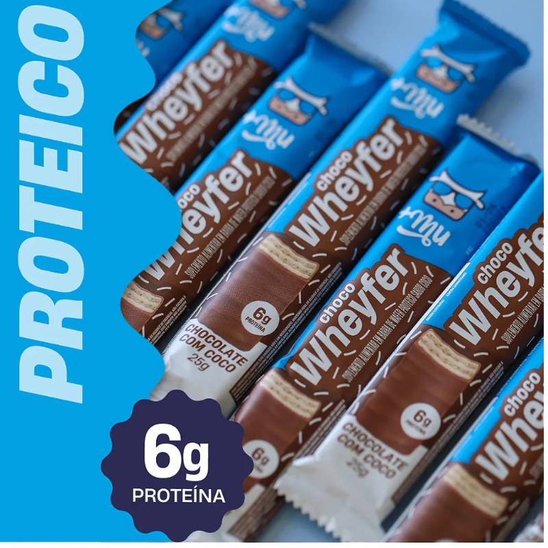Chocowheyfer Proteico Sabor Chocolate com Coco Display, 12 Unidades 25g +Mu