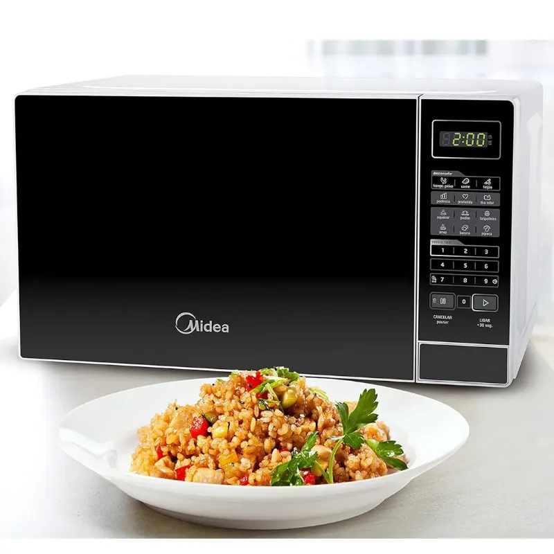 O Micro-ondas 20L Midea veio para ser seu novo aliado na cozinha. Seu painel conta com o Minuto Fácil que proporciona acesso rápido com teclas de 1,2 ou 3 minutos para facilitar ainda mais o seu dia a dia. Possui diversas opções de Receitas Pré Programadas,Menu Descongelar e Menu Preferido, que deixa salvo o programa e o tempo de suas receitas prediletas.Com baixo consumo de energia, o micro-ondas 20L Midea tem a função Eco, que proporciona economia com o visor desligado. Além da função Tira Odor, que remove os cheiros com apenas um clic, possui a Função Aquecer e Tecla Ligar/+30 segundos.Aproveite da comodidade e da praticidade da linha de micro-ondas Midea.