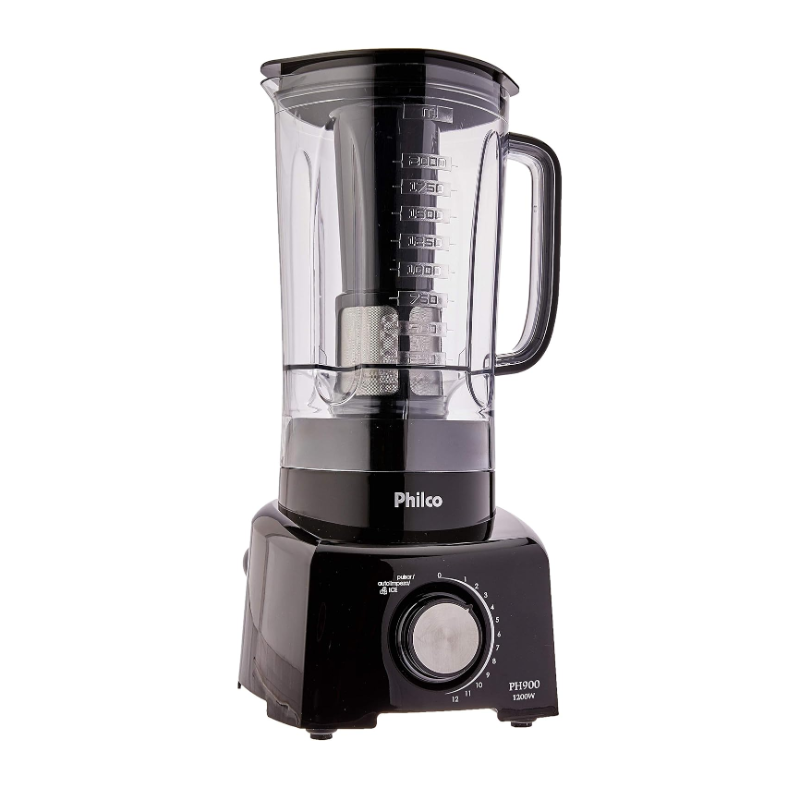 PHILCO Cor Preto Características especiais12 velocidades + pulsar, Acompanha Filtro, Potência de 1200WCapacidade3 Litros Dimensões do produto17,5P x 20L x 42,5A centímetros