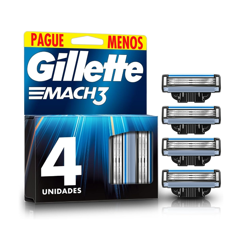 Os refis do aparelho de barbear Gillette Mach3 tem três lâminas mais resistentes que o aço e se mantêm afiadas por mais tempo (vs. Prestobarba3). Ele é criado para dar a você até 20 barbas por recarga e sua fita lubrificante muda de cor quando o barbear não é mais ótimo, indicando que é hora de substituir a carga por uma nova. A sua cabeça movel, que sé adapta ao contorno da sua pele, e os seus 10 micro estabilizadores que alisam a pele proporcionam um barbear mais rente. Todos os refis da família MACH3 podem ser usados com qualquer cabo MACH3.