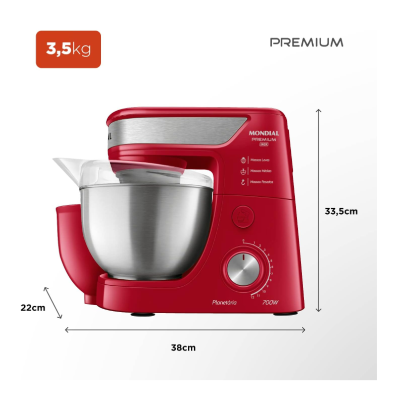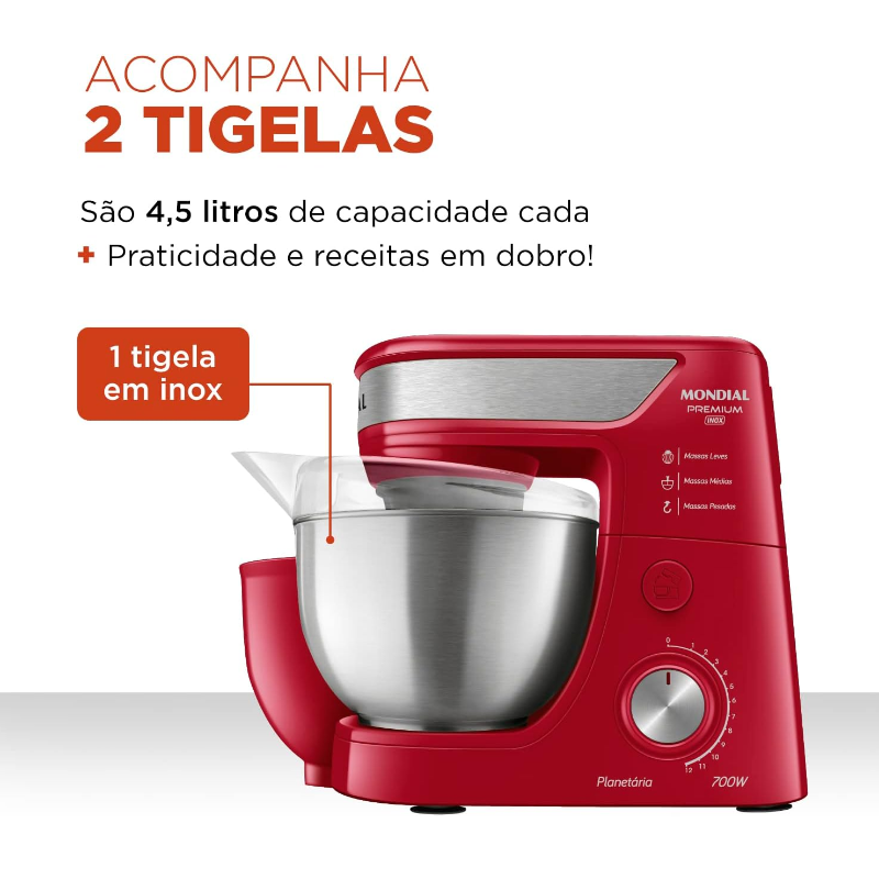 POTÊNCIA DE 700W: Mais potência para preparar vários tipos de massas, pães, cremes, chantilly e claras em neve.