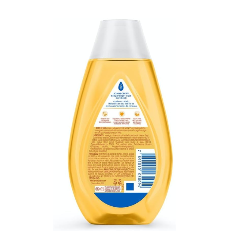 O que é e para que serve? Você sabia que o cabelo dos bebês é 5x mais fino que o cabelo dos adultos? Com fórmula suave para dar o cuidado que o cabelo do seu bebê precisa, o Shampoo Para Bebê JOHNSON'S® Baby De Glicerina, 200mL limpa suavemente e protege* os cabelos e o couro cabeludo do bebê sendo seguro para todas as idades. Testado por Pediatras e Dermatologistas. Frasco com 20% de plástico reciclado, cuidando do seu bebê e do futuro do nosso planeta! * do ressecamento Benefícios e diferenciais - Tão suave para os olhos quanto água pura - Tripla ação: cabelo limpo, protegido* e hidratado (*contra o ressecamento) - Hipoalergênico, formulado para ser suave - Testado por pediatras e dermatologistas - Livre de ingredientes que são agressivos à pele do bebê (corantes, parabenos, ftalatos e sulfato) - A fórmula CHEGA DE LÁGRIMAS® permite uma experiência sem choro, por ser suave aos olhos. - Feito com glicerina de origem natural - pH ideal para a delicada pele do bebê Como usar Aplique o Shampoo JOHNSON’S® de Glicerina nos cabelos molhados, massageando-os suavemente até obter uma espuma cremosa. Em seguida, enxágue bem com água. Adequado para o uso diário. Indicações de uso: seguro para todas as idades Composição Aqua/água purificada, Cocamidopropyl Betaine/cocoamidopropilbetaína, Decyl Glucoside/decil glicosídeo, Sodium Cocoyl Isethionate/cocoil isetionato de sódio, PEG-80 Sorbitan Laurate/polissorbato 20, PEG-150 Distearate/diestearato de PEG-150, Glycerin/glicerol, Citric Acid/ácido cítrico, Sodium Benzoate/benzoato de sódio, Sodium Methyl Cocoyl Taurate/metil cocoil taurato de sódio, Parfum/fragrância, Disodium EDTA/edetato dissódico, Polyquaternium-10/poliquatérnio-10. Precauções Mantenha fora do alcance de crianças. Deve ser aplicado por adultos ou sob sua supervisão. Evitar contato com os olhos. Caso o produto entre em contato com os olhos, lavar com água corrente em abundância e procurar um médico. Não usar se o couro cabeludo estiver ferido ou irritado. Em caso de irritação, suspender o uso e procurar um médico. Conservar em local fresco e ao abrigo da luz solar direta. Este produto foi formulado de maneira a minimizar possível surgimento de alergia.