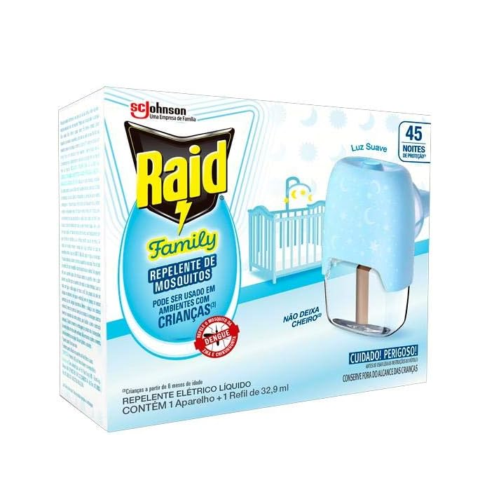 Raid Repelente Eletrico Líquido Family, 45 Noites, 1 Aparelho e 1 Refil de 32,9ml