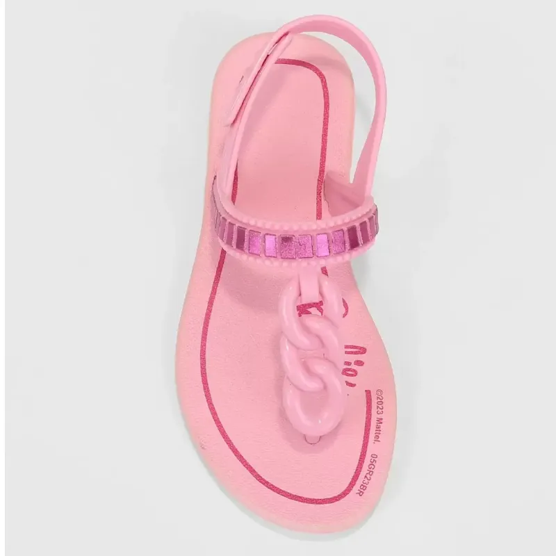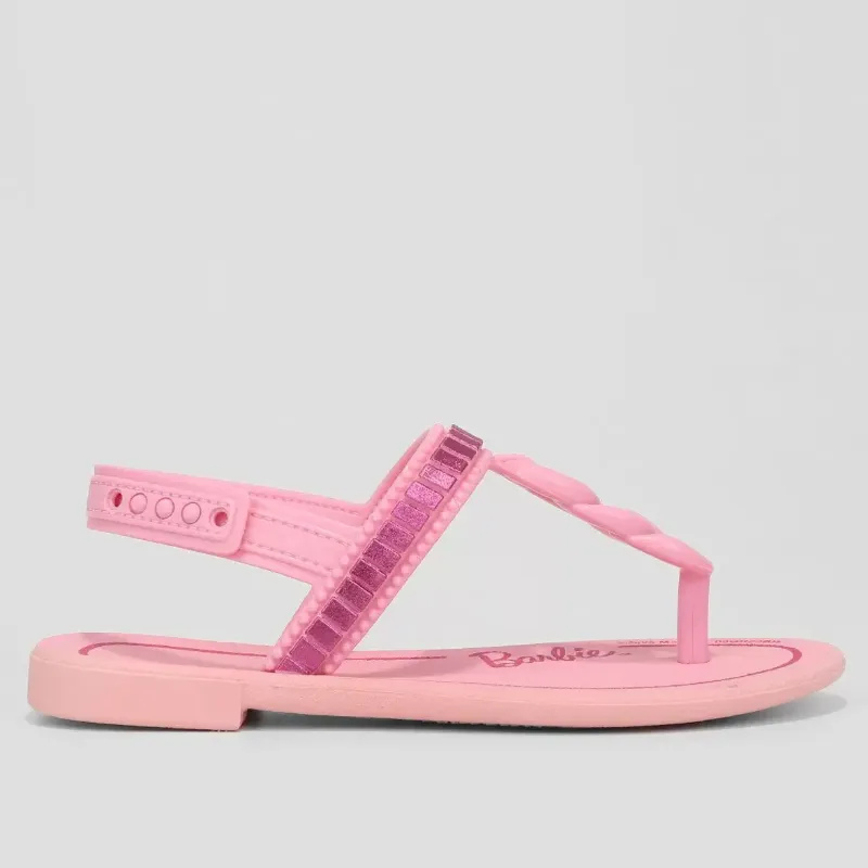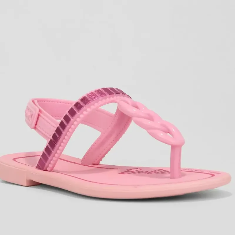 Charme e diversão para a sua pequena. A sandália infantil Grendene Kids Barbie Flight é perfeita para caprichar no estilo das meninas e garantir conforto no dia a dia. Esta rasteirinha conta com tira frontal em formato de corrente e recebe detalhes com pintura metalizada. A tira regulável permite o ajuste ideal ao pé, para maior comodidade. Esta modelo acompanha avião da Barbie, escolha certa para deixar as brincadeiras ainda melhores.