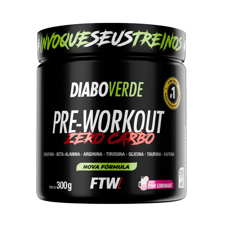 Pre Treino Pre Workout Zero Carbo com Creatina, 300g, Pink Lemonade FTW, DIABO VERDE