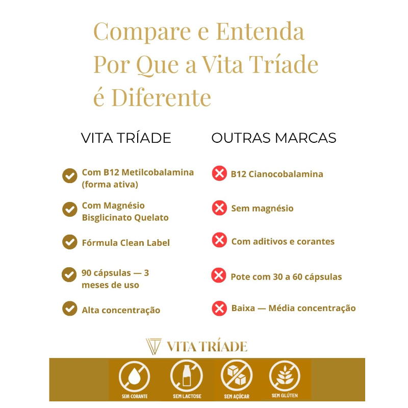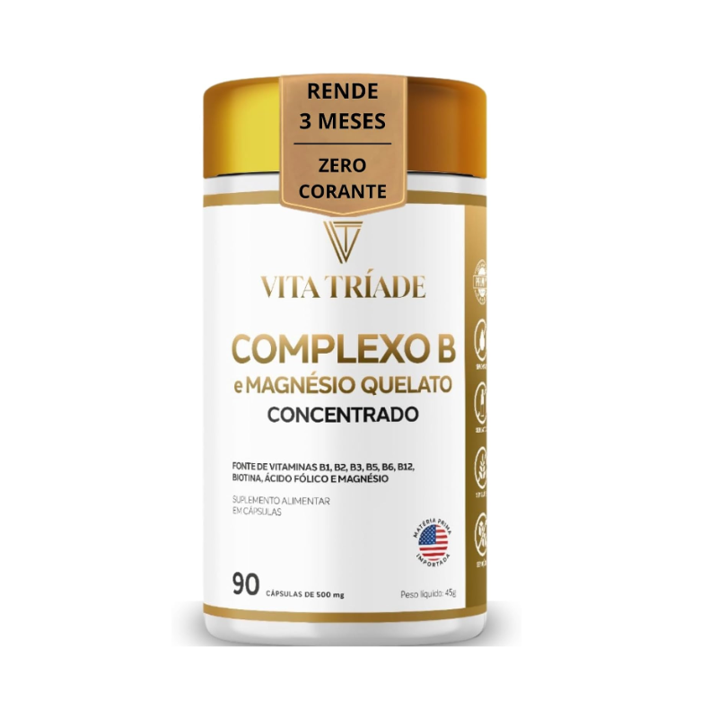 Complexo B Ultra Vita Tríade – Vitaminas B1, B2, B3, B5, B6, B9, B12, Biotina e Magnésio Quelato – 90 Cápsulas Rende 3 meses