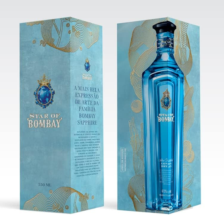 Enquanto gins comuns fervem seus vegetais diretamente no tanque de destilação, para alcançar seu sabor, o bombay sapphire é criado através do processo de vapor de infusão. Os 12 botânicos preciosos usados nesse gin, são mantidos separados do destilado em cubas de cobre perfuradas, e quando os vapores aquecidos sobem, o sabor distintivo dos botânicos é liberado. o resultado é um líquido aromático complexo que proporciona um sabor mais amplo e equilibrado. Isso faz do Star Of Bombay, um gin excepcionalmente suave, projetado para ser apreciado sozinho em um Martini ou em uma variedade de coquetéis contemporâneos.