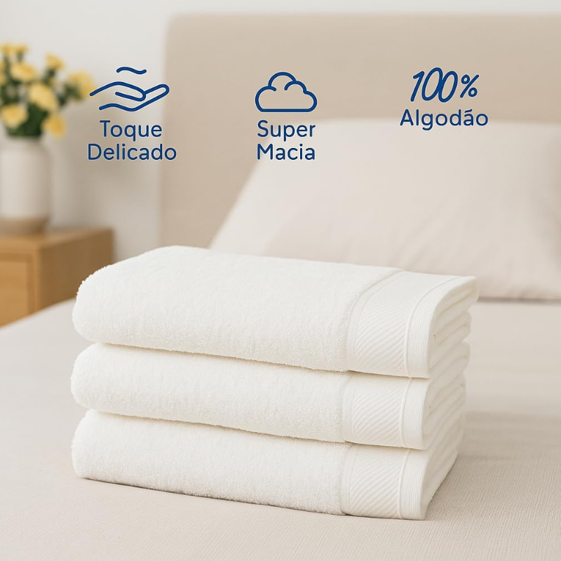 - Contem: 4 Toalhas de Banho Hotel - Tamanho: 72cm x 1,50m