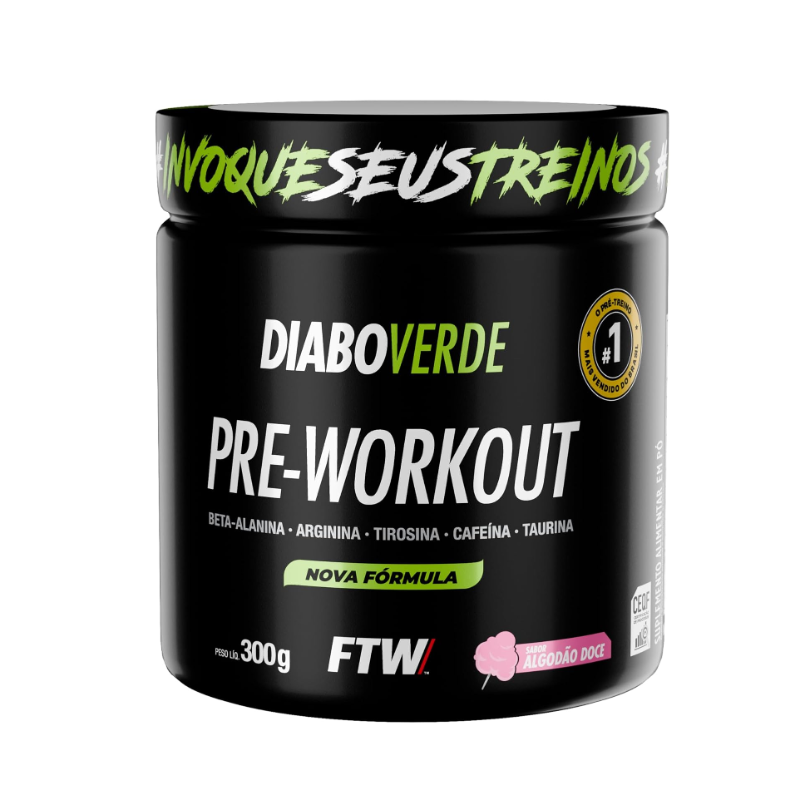 Desperte seu potencial máximo com Diabo Verde #Pre-Workout da FTW, um suplemento alimentar formulado especialmente para quem busca mais energia, foco e desempenho durante os treinos. Sua fórmula combina aminoácidos essenciais com cafeína microencapsulada, proporcionando estímulo de forma gradual e duradoura. Ideal para ser consumido antes das atividades físicas, esse pré-treino é indicado para atletas e praticantes de atividades intensas, sempre com orientação de um profissional habilitado. BENEFÍCIOS: 💪 Fórmula Energizante: Com cafeína microencapsulada para liberação gradual, ideal para manter o foco e a disposição. ⚡ Aminoácidos de Alta Qualidade: Contém beta-alanina, L-arginina, L-taurina e L-tirosina. 🧪 Isomaltulose: Carboidrato de baixo índice glicêmico que auxilia no fornecimento de energia sustentada. 🔁 Rendimento Inteligente: Pote com 300g rende aproximadamente 30 porções. ✅ Sem Glúten: Seguro para quem possui restrições alimentares. COMO CONSUMIR: Dilua 2 medidas dosadoras (10g) em 200ml de água gelada e consuma 30 minutos antes do treino. A dose diária máxima de beta-alanina é de 2g, podendo ser fracionada com no mínimo 2 horas entre as porções. INFORMAÇÕES IMPORTANTES: Produto indicado para adultos (≥ 19 anos). Não deve ser consumido por gestantes, lactantes ou crianças. Este produto não é um medicamento. Conserve em local seco, fresco e protegido da luz. Após aberto, consumir em até 45 dias. Não exceda a recomendação diária indicada na embalagem. Mantenha fora do alcance de crianças.