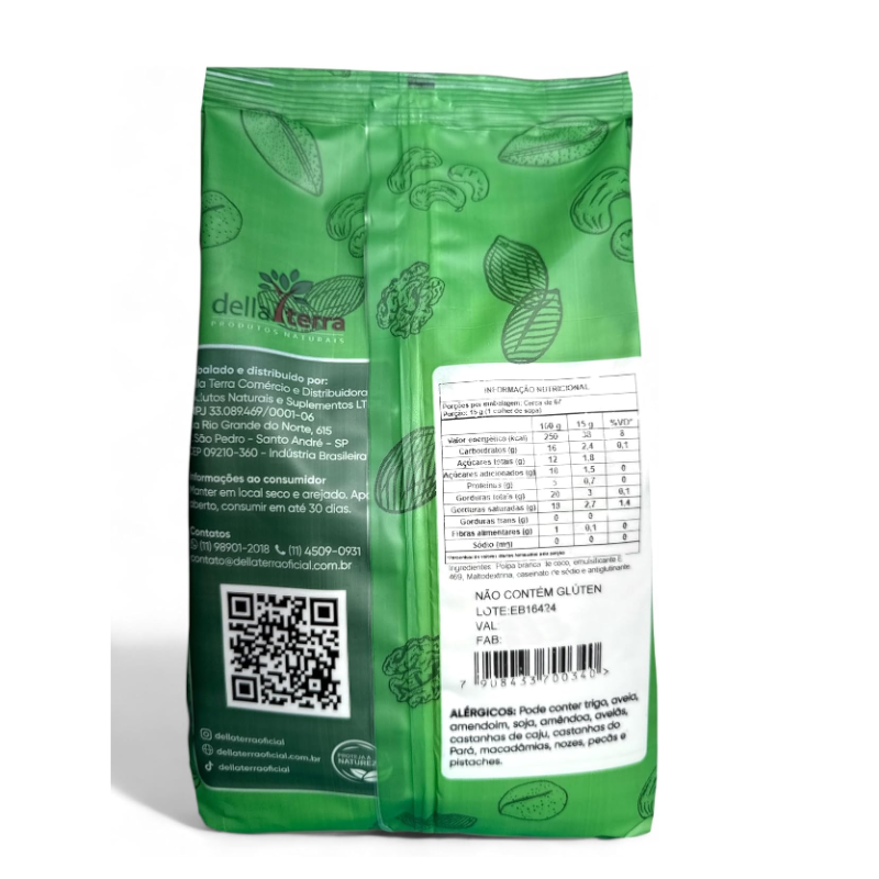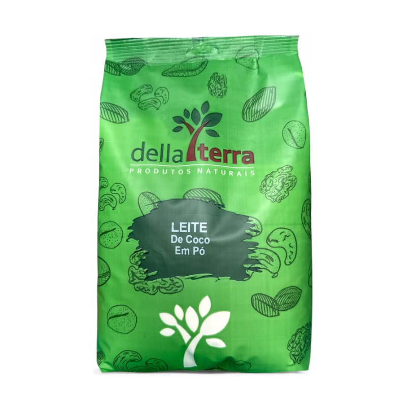 FOTOS REAIS DOS NOSSOS PRODUTOS. EMBALAGEM NOVA. O leite de coco em pó Della Terra, é uma boa opção ao leite de vaca para aqueles que preferem os leites vegetais para compor sua dieta. Ele pode ser usado como substituto do leite de vaca e adicionado em receitas de bolos e biscoitos. INGREDIENTES: "POLPA BRANCA DE COCO,EMULSIFICANTE E 469, MALTODEXTRINA, CASEINATO DE SODIO E ANTIGLUTINANTE" ALÉRGICOS: Pode conter trigo, aveia, amendoim, soja, amêndoa, avelãs, castanhas de caju, castanhas do Pará, macadâmias, nozes, pecãs e pistaches. NÃO CONTÉM GLÚTEN. Como Usar e Contraindicações O leite de coco pode ser consumido da mesma forma que o leite de vaca, podendo ser utilizado puro ou em preparações como café com leite, vitaminas, bolos, biscoitos e tortas. Não existe uma quantidade ideal para ser consumida, mas quem deseja emagrecer deve consumir apenas 1 ou 2 copos por dia. Além disso, é importante lembrar que o leite de coco não substitui o leite materno e pode não ser adequado para crianças, adolescentes e idosos, devendo-se consultar o médico ou o nutricionista para obter permissão e orientação de uso. Contém gorduras do bem!
