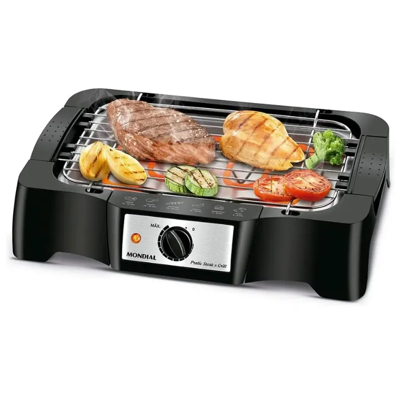 VERSATILIDADE DE RECEITAS: A churrasqueira Mondial grelha carnes, frangos, vegetais, hambúrgueres e muito mais.