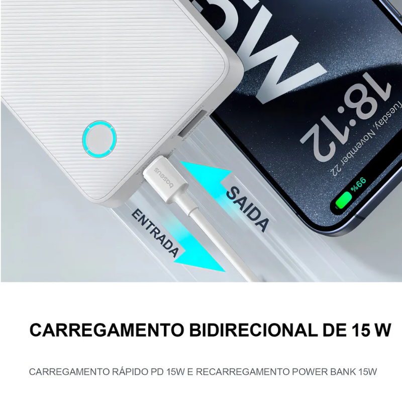 Power Bank Baseus Airpow Lite 10000mah 15w Cabo Usb-c Branco