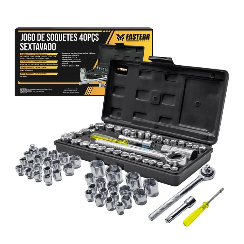 Kit Chaves Jogo Catraca Reversível Soquetes 40 Peças Maleta Fasterr