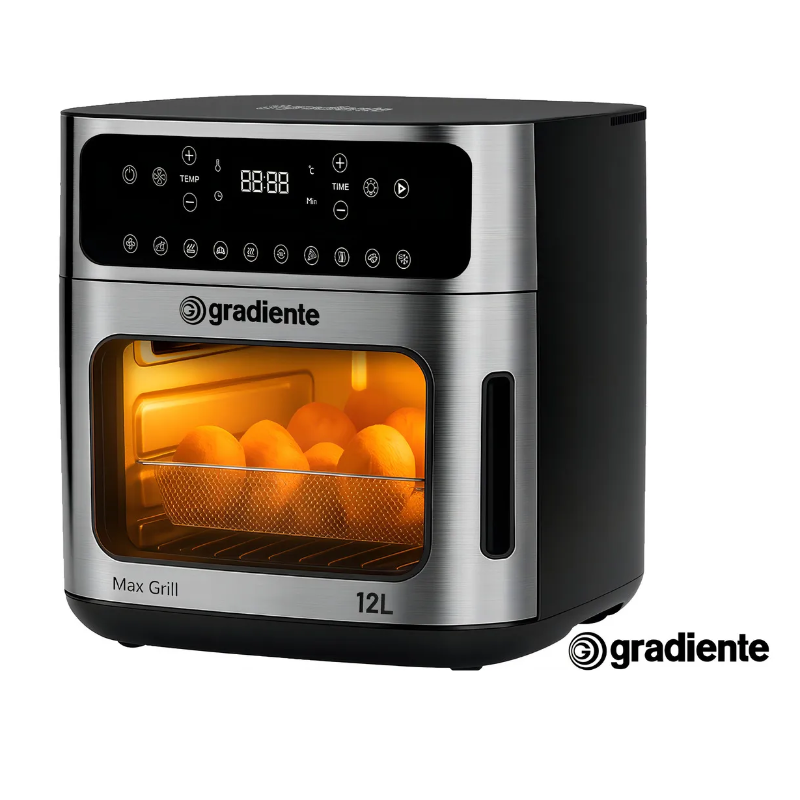 A Fritadeira Elétrica Air Fryer Oven Digital PGFO1200 da Gradiente é a solução ideal para quem deseja cozinhar de forma saudável e prática. Com capacidade de 12 litros, painel touch screen, receitas pré-programadas, ela oferece versatilidade para fritar, grelhar, assar e tostar seus alimentos. O cesto removível e a bandeja antiaderente facilitam o uso e a limpeza.