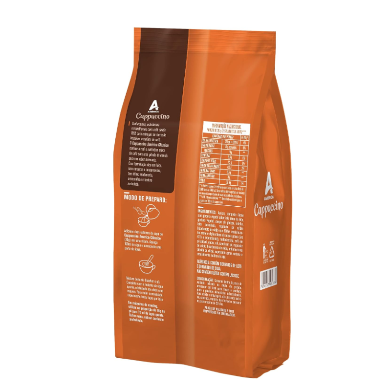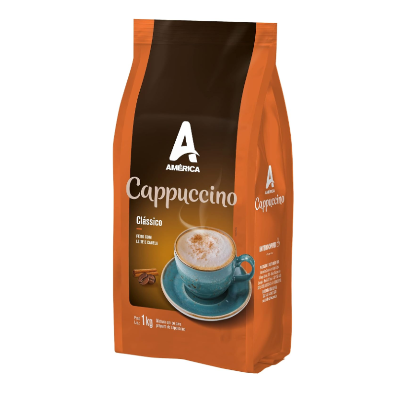 Cappuccino clássico américa de 1kg, é a verdadeira receita de cappuccino com café e um toque de canela.