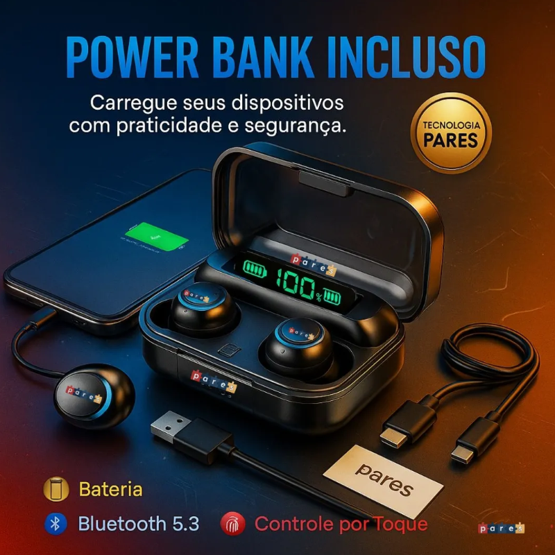"Este produto possui marca registrada no INPI, protegida pelas leis de Propriedade Intelectual (Lei nº 9.279/96). Todos os direitos de venda são reservados à Pares Ltda e lojas autorizadas. A comercialização de produtos sem a devida autorização constitui crime, sujeito a penalidades legais. Fone de Ouvido Bluetooth – Alta Qualidade de Som e Conforto Desfrute de uma experiência de áudio sem fio com este Fone de Ouvido Bluetooth de alta qualidade! Com conexão rápida e estável, este fone oferece um som nítido e graves potentes, ideal para ouvir suas músicas favoritas, assistir vídeos ou atender chamadas com total liberdade de movimentos. Ele possui design ergonômico e leve, proporcionando conforto durante longas horas de uso. Além disso, a bateria de longa duração garante várias horas de reprodução contínua. Compatível com smartphones, tablets, laptops e outros dispositivos com tecnologia Bluetooth. Inclui microfone integrado para chamadas em mãos-livres e controles de volume diretamente no fone. Perfeito para quem busca praticidade e qualidade de som em um único produto!