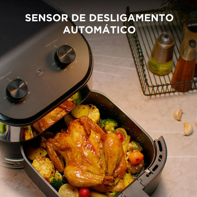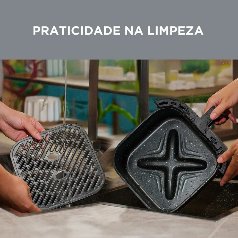 Com 1500W de potência, a fritadeira garante um aquecimento rápido e eficiente, oferecendo um desempenho excelente e garantindo alimentos mais crocantes por fora e macios por dentro. Transforme a sua cozinha com a nova Wide Max 4.5L Midea, projetada para trazer mais eficiência e saúde às suas refeições diárias. A linha Wide Max da Midea é a geração mais moderna de fritadeiras do mercado, com formato amplo para evitar empilhamento dos alimentos e com a melhor engenharia de circulação de ar da categoria, somada a tecnologia X Cyclone, proporcionando uma preparação mais rápida e eficiente das suas refeições. Com a exclusiva tecnologia BlackStone, a bandeja e a grelha antiaderente garantem uma qualidade superior, evitando que os alimentos grudem e tornando a limpeza uma tarefa fácil, sem descascar e até lavável na lava-louças. A fritadeira conta com um sistema de pausa automática que interrompe o funcionamento ao retirar a bandeja e, também, após o término do tempo pré-definido no timer, garantindo segurança e evitando o preparo prolongado dos alimentos. O material interno de alumínio combina a segurança, o silêncio e o cozimento uniforme para uma experiência culinária excepcional. A Wide Max 4.5L Midea é a escolha ideal para quem busca qualidade, facilidade e saúde no preparo das refeições.