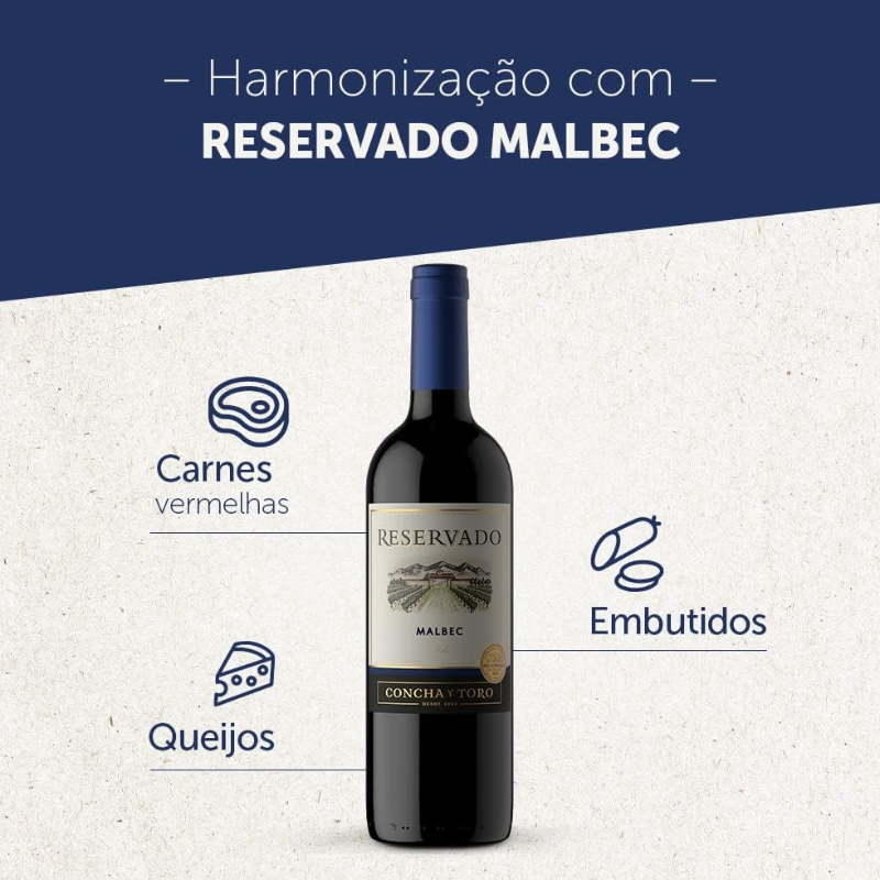 Vinho Concha Y Toro Reservado Malbec 750 ml. Vinho tinto Malbec, produzido na região de Mendonza na Argentina.
