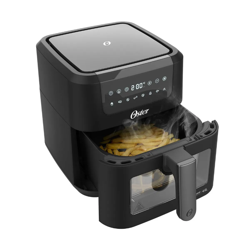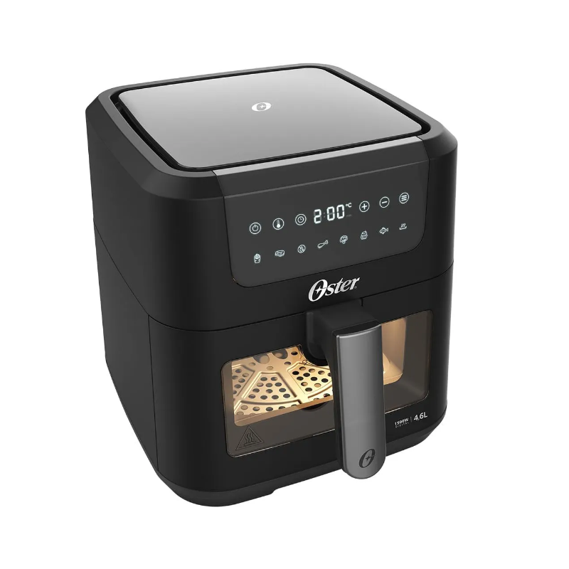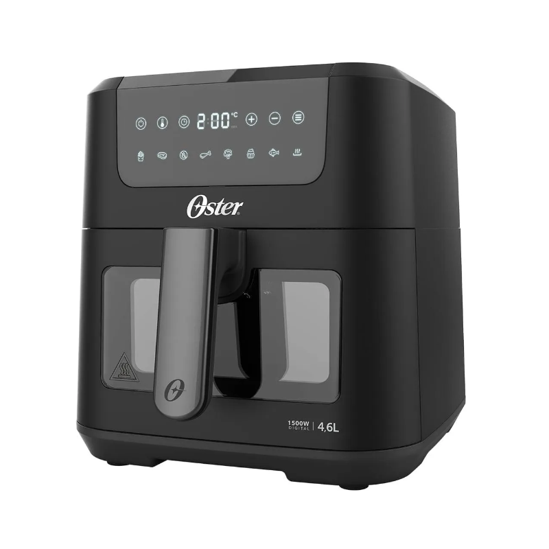 A Fritadeira Clear Oster® é compacta no design, mas gigante em possibilidades. Perfeita para quem gosta de acompanhar o preparo das receitas nos mínimos detalhes. - Cesto com Visor Transparente: Mais praticidade ao seu preparo, sem precisar abrir o cesto e sem perder calor; - 4,6L de Capacidade: Ideal para receitas que exigem de grandes quantidades; - Iluminação Interna: Acione a luz separadamente para visualizar todos os detalhes do preparo da sua receita; - Painel Digital: 8 funções pré-programadas: batata-frita, carne, vegetais, bolo, peixe, frango, desidratar e reaquecer; - Timer de 60 Minutos: Programe o tempo exato das suas receitas; - Grelha Easy Clean: Fácil de remover e muito mais fácil de limpar. Design e praticidade para sua rotina! Selo de Segurança OCP SGS.