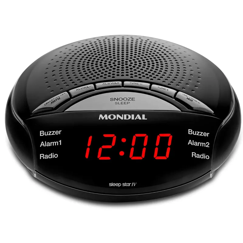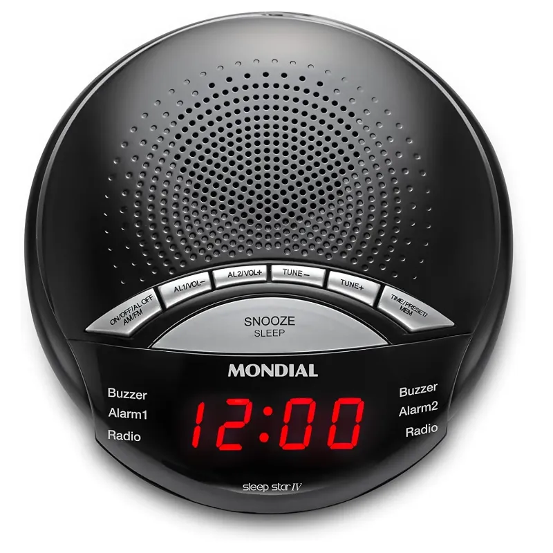 Com capacidade para 2 HORÁRIOS DE DESPERTADOR DIFERENTES e 20 MEMÓRIAS PARA RÁDIO, o Rádio Relógio Sleep Star IV RR-04 será sua melhor companhia. Ele também tem as FUNÇÕES SLEEP E SONECA - com a FUNÇÃO SLEEP ele DESLIGA SOZINHO no tempo programado. Com a FUNÇÃO SONECA, O DESPERTADOR TOCA DE NOVO depois de 9 minutos, dando os minutinhos a mais de sono que você sempre quis. Seu DUAL ALARM permite programar 2 HORÁRIOS DIFERENTES para o despertador soar o alarme. Já o DISPLAY DIGITAL TEM VISOR GRANDE, para você ver o que está tocando ou que horas são mais facilmente. Suas 20 MEMÓRIAS DE RÁDIO FM garantem que você sempre possa voltar para as suas ESTAÇÕES FAVORITAS. Além disso, o Rádio Relógio Sleep Star IV RR04 ainda tem BATERIA BACK-UP, ou seja, compartimento para bateria reserva, para você não perder a hora se tiver uma breve queda de energia. Tudo isso com a QUALIDADE MONDIAL.