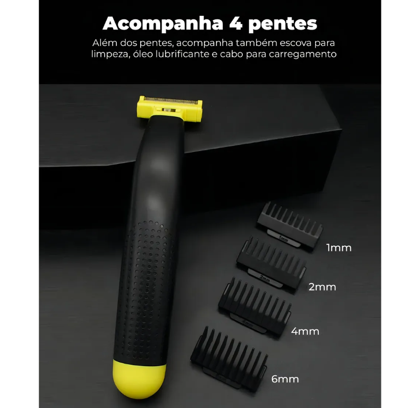 Feito para cortar o pelo, não a pele. Barbeador profissional de alto desempenho é a maneira revolucionária de fazer a barba, com uma tecnologia exclusiva que garante raspar, aparar e contornar qualquer tamanho de barba, sem cortes ou irritações. Inclui 4 pentes para aparo. Uso seco ou molhado. Lâmina com sistema duplo de proteção, em aço inoxidável, revestimento deslizante e pontas arredondadas que protegem a sua pele contra cortes e irritações, mesmo em áreas sensíveis. Para proteger sua pele, mantém uma micro distância de segurança entre a lâmina e a pele. Use no sentido contrário ao pelo para um barbear mais rente. Cabeça flexível garante contornos perfeitos com a lâmina dupla face. Você também pode usá-la para cortar e alinhar os pelos mais compridos do bigode ou da barba. Sua barba e seu estilo ficam prontos em segundos. Uso seco ou molhado (100% à prova d´água). Use da forma que quiser: a seco, com a pele molhada ou com espuma, inclusive no banho. De qualquer maneira, sua pele estará protegida contra cortes e irritações.