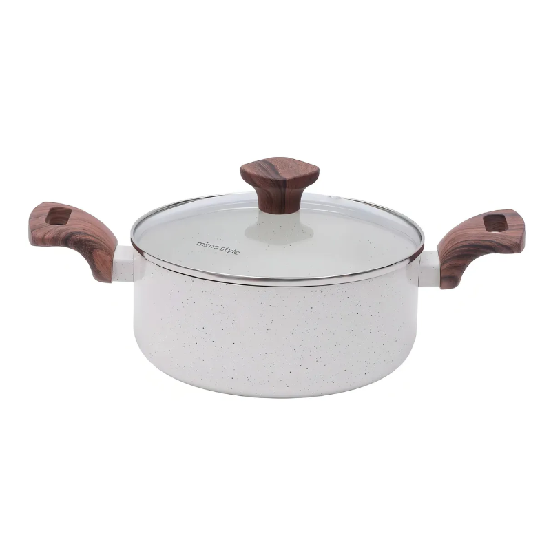 A linha Pratic Cook possui 3 camadas, sendo 2 camadas de revestimento cerâmico e 1 camada resistente a alta temperatura. Com estrutura de alumínio as panelas possuem 2mm de espessura que proporciona uma maior durabilidade do produto, como também mais uniformidade térmica, cozinhando os alimentos de maneira uniforme, sem variações de temperatura. Sem contar que também mantém o calor por mais tempo mesmo fora do fogo, possibilitando refeições aquecidas até mesmo à mesa. Com revestimento soft touch, toque super macio, em seus cabos e alças, confortável ao segurar e previne queimaduras.